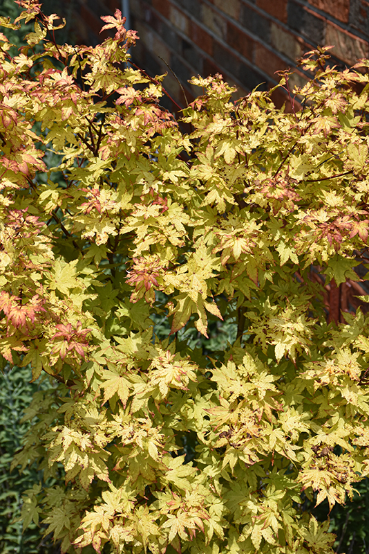 Summer Gold Japanese Maple is primarily valued in the landscape or garden for its interestingly mounded form. It has attractive orange-tipped gold foliage which emerges light green in spring. The lobed palmate leaves are highly ornamental and turn an outstanding yellow in the fall. The rough brick red bark adds an interesting dimension to the landscape.
